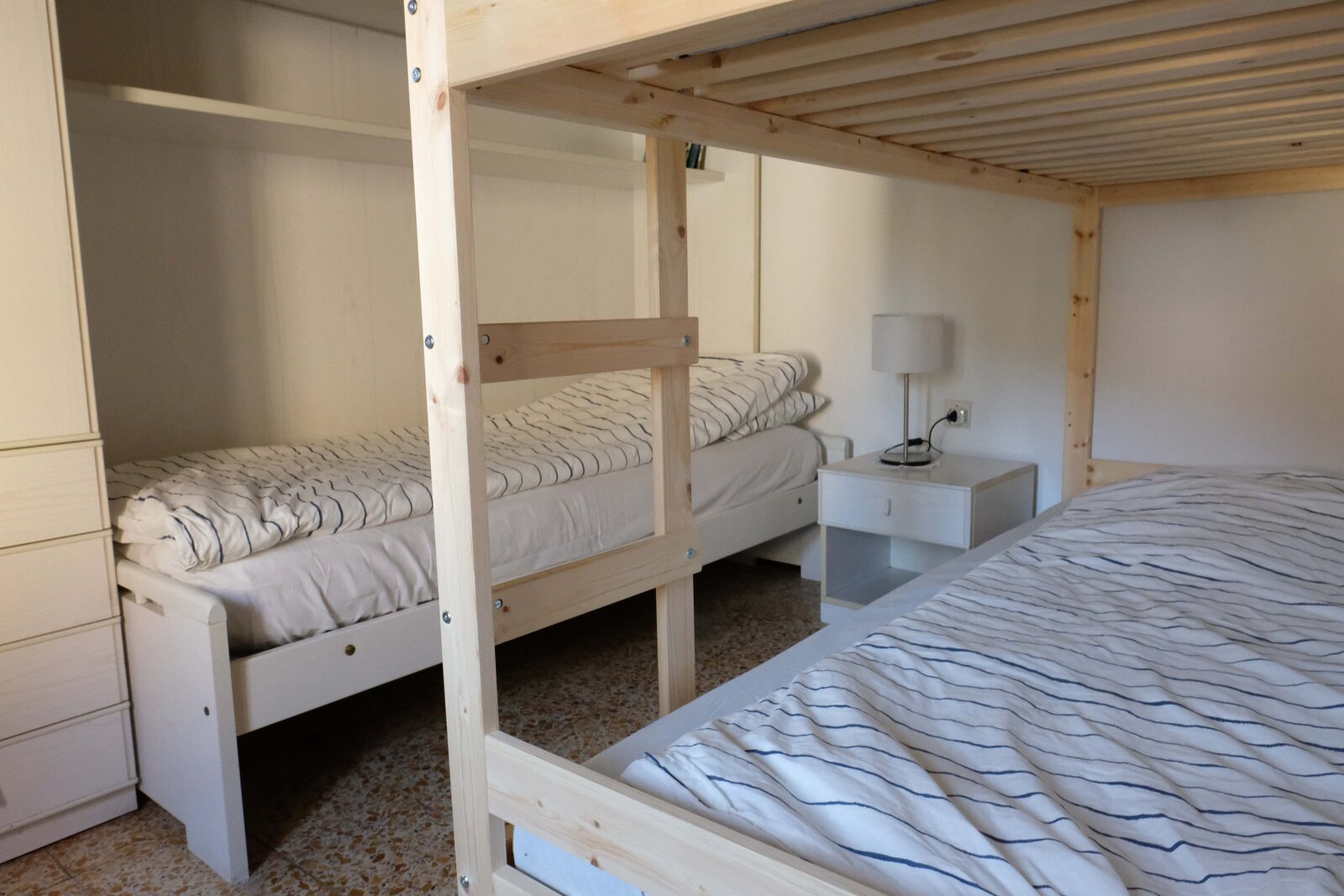 On the second floor there are 4 bedrooms, 3 double beds and one room with 3 single beds. On the first floor a fully equiped kitchen and a terrace where you can eat or just sit and read a book.